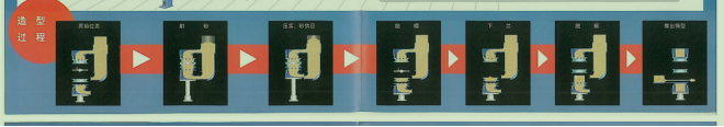 ● 通過液壓系統(tǒng)對型砂和模具擠壓成型,模具脫離后,型砂內(nèi)部形成和模具一樣的鑄型。