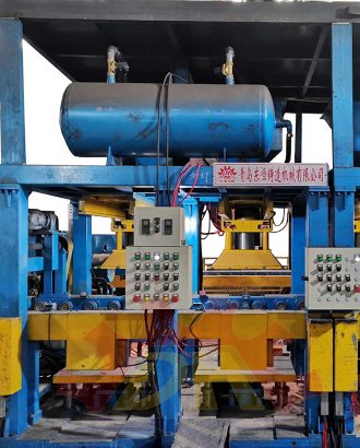 造型主機是采用氣流加砂頂射+底射系統(tǒng),型砂直接對著模具分別從上砂箱的上部和下砂箱的下部射砂,型砂填充在砂箱里